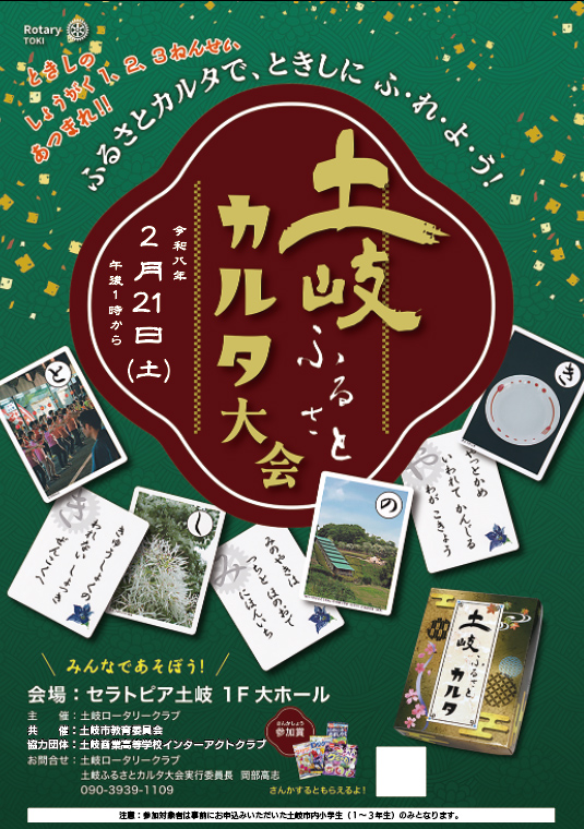 土岐ロータリークラブでは、土岐市教育委員会との共催により、令和8年2月21日(土)に「第2回 土岐ふるさとカルタ大会」を開催いたします。